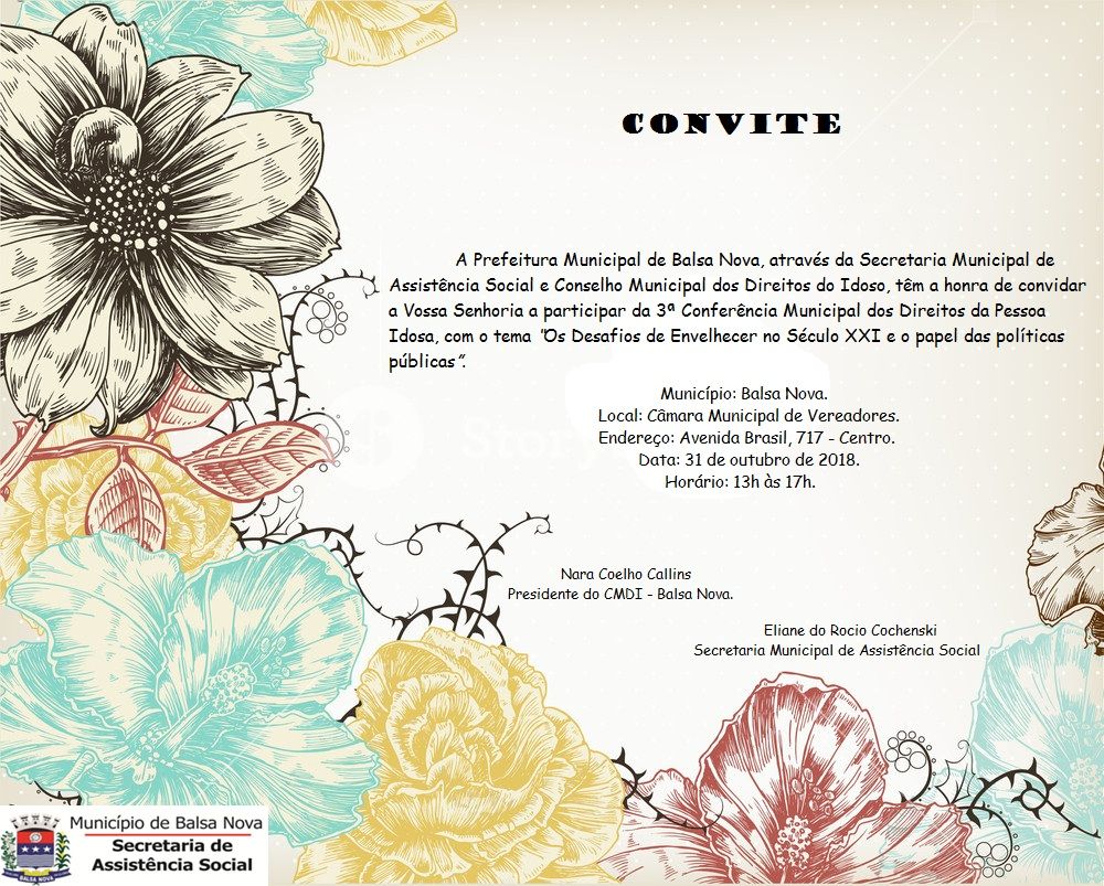 Dia 31/10/2018 das 13h às 17h, na Câmara Municipal de Balsa Nova