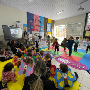 O Projeto Cordas do Iguaçu também abrilhantou a visita no CMEI Tia Niva, com apresentações musicais que alegraram e complementaram as atividades desenvolvidas e em exposição na Instituição encantando a todos.