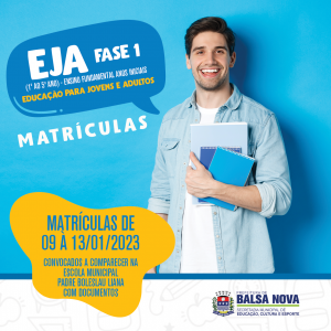 A Secretaria Municipal de Educação realizou o cadastramento dos interessados em frequentar a Educação de Jovens e Adultos – EJA fase I (1ª a 4ª série), sendo assim divulga a lista dos interessados com a realização do cadastro.